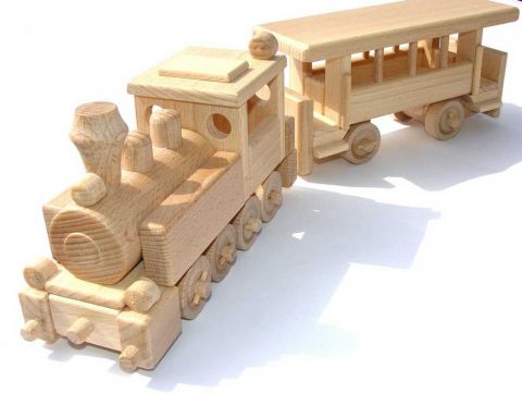 Drevený model vláčiku vyrobený z kvalitného tvrdého bukového dreva s nádherne prepracovanými detailami. Jeho povrch je len voskovaný a leštený, nie je nijako chemicky upravovaný alebo zafarbený, aby bol zachovaný prírodný vzhľad.