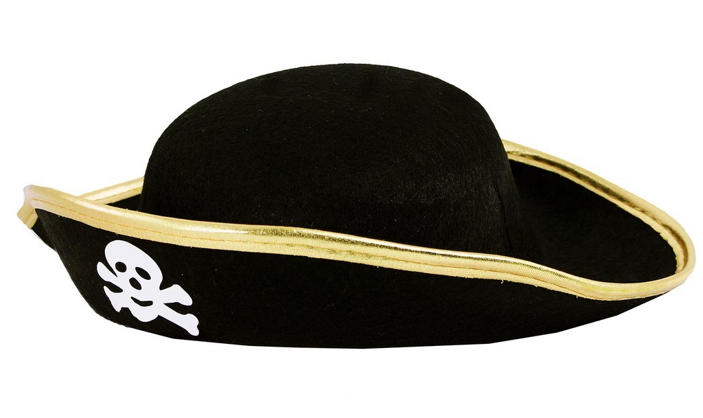 Úchvatný klobúk pre malých pirátov. Tento čierny elegán je zdobený potlačou s motívom lebky na prednej strane a zlatým lemovaním.