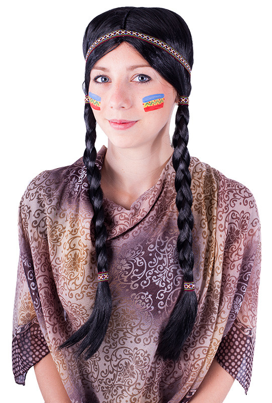 Úchvatná karnevalová dámska parochňa v štýle indiánskej Rybany je určená pre dospelých. Parochňa je prizdobená čelenkou a gumičkami.
