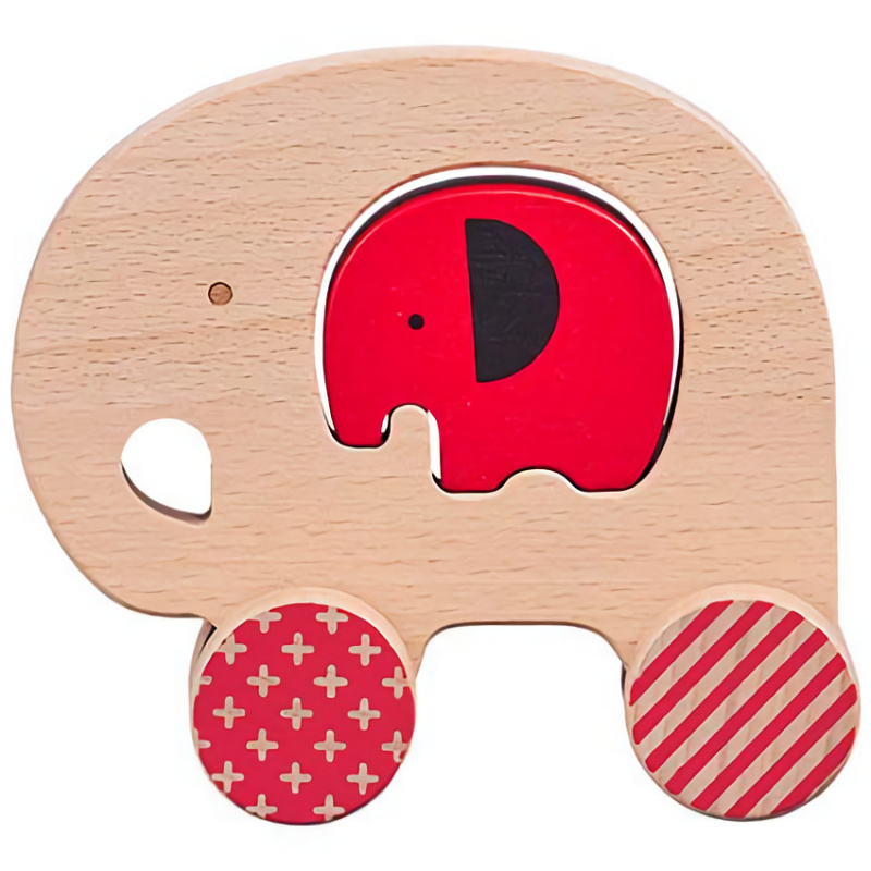 Drevený slon na kolieskach je zaoblený a jednoducho uchopiteľný. Uprostred má hračka otvor, v ktorom je voľne uložená figúrka sloníča. Je zabalená v krásnej krabici a je perfektným darčekom pre mamičky v očakávaní, alebo ako narodeninový darček detí.