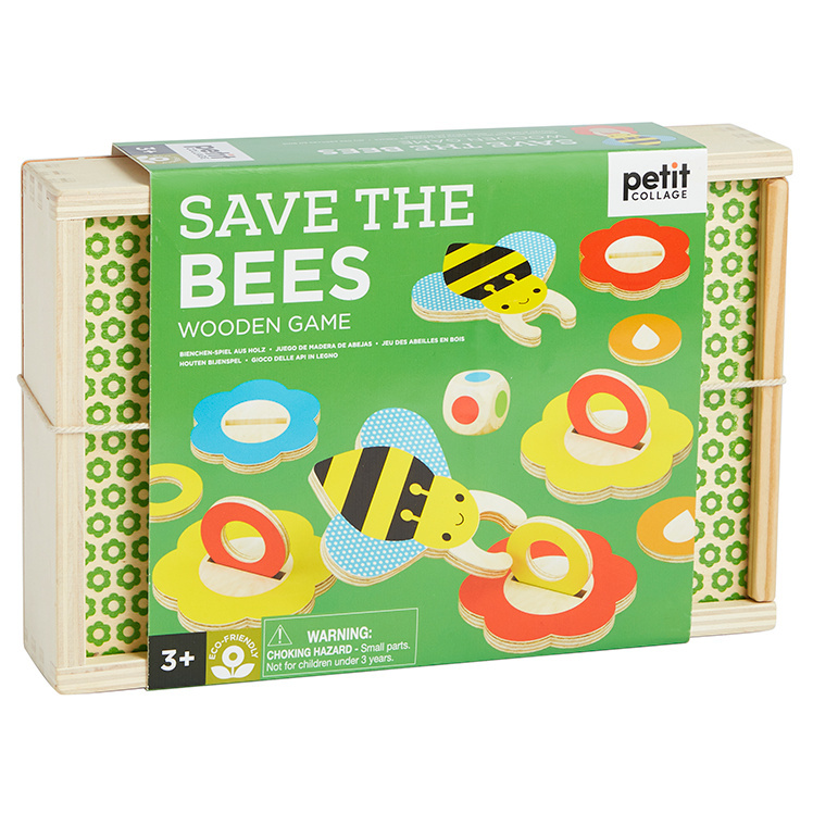 Pomôžte včielkam zbierať z kvetov nektár a vyrábať med. Hádžte kockou, hľadajte zhodu farieb a spoznajte význam včiel v prírode. Hra je vyrobená z odolnej preglejky, súčasti prevedené v pestrých farbách a uložené sú v praktickej krabičke.