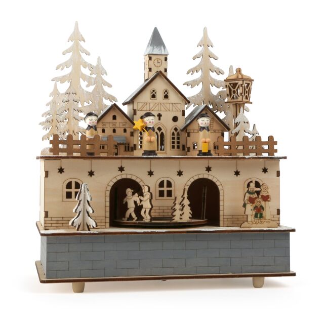 Vykúzlite si nielen vianočnú atmosféru pri pohľade na tancujúce postavičky v čarovnej dedine. Pri natiahnutí hrá známa melódia a pod zasneženou osvetlenou krajinou tancujú postavičky.
